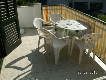 Appartamento può accogliere 4 ospiti. I letti sono disposti nelle camere da letto che sono 1, e nella camera di soggiorno, su 43m2. Gli ospiti hanno a disposizione il proprio terrazzo per godere nelle calde serate estive. Dall'appartamento si gode di una vista sul mare. Si può preparare il cibo utilizzando il barbecue comune.
