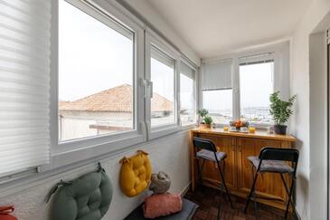 Appartamento può accogliere 4 ospiti. I letti sono disposti nelle camere da letto che sono 2, su 50m2. Gli ospiti hanno a disposizione il proprio terrazzo per godere nelle calde serate estive. Dall'appartamento si gode di una vista sul mare.
