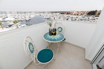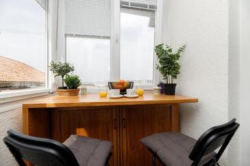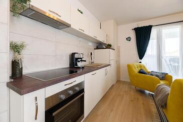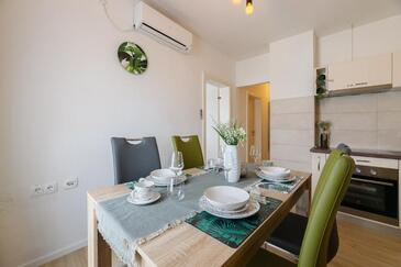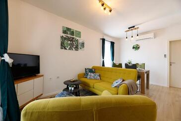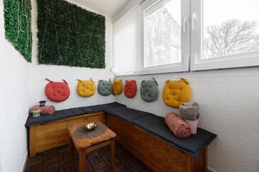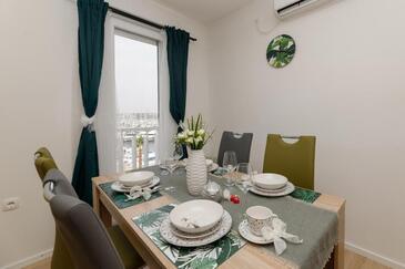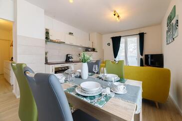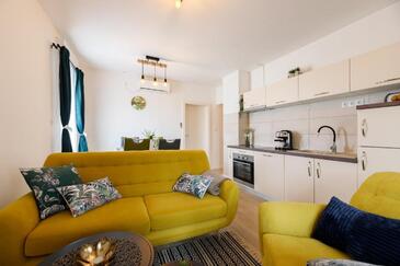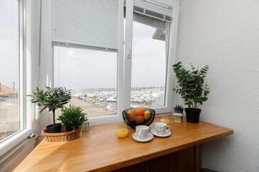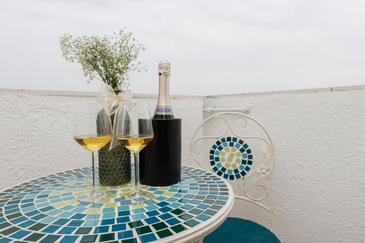 Appartamento può accogliere 4 ospiti. I letti sono disposti nelle camere da letto che sono 2, su 50m2. Gli ospiti hanno a disposizione il proprio terrazzo per godere nelle calde serate estive. Dall'appartamento si gode di una vista sul mare.
