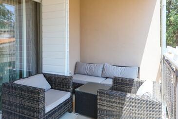 Appartamento può accogliere 4 ospiti. I letti sono disposti nelle camere da letto che sono 2, su 55m2. Gli ospiti hanno a disposizione il proprio terrazzo per godere nelle calde serate estive. Si può preparare il cibo utilizzando il barbecue comune. Durante il soggiorno gli ospiti possono utilizzare la piscina comune. Nell'unità di alloggio si possono portare gli animali domestici con un pagamento supplementare.