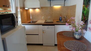 Appartamento può accogliere 5 ospiti. I letti sono disposti nelle camere da letto che sono 2, su 49m2. Gli ospiti hanno a disposizione il proprio terrazzo per godere nelle calde serate estive. Si può preparare il cibo utilizzando il barbecue comune. Nell'unità di alloggio si possono portare gli animali domestici con un pagamento supplementare.