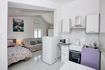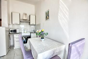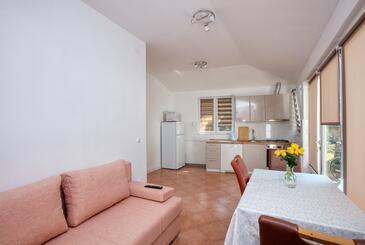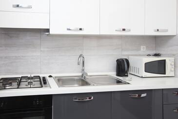 Appartamento può accogliere 5 ospiti. I letti sono disposti nelle camere da letto che sono 2, su 52m2. Gli ospiti hanno a disposizione il proprio balcone per godere delle calde serate estive. Dall'appartamento si gode di una vista sul mare. Si può preparare il cibo utilizzando il barbecue comune. Nell'unità di alloggio si possono portare gli animali domestici con un pagamento supplementare.