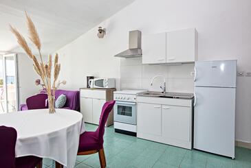 Appartamento può accogliere 5 ospiti. I letti sono disposti nelle camere da letto che sono 2, su 52m2. Gli ospiti hanno a disposizione il proprio balcone per godere delle calde serate estive. Dall'appartamento si gode di una vista sul mare. Si può preparare il cibo utilizzando il barbecue comune. Nell'unità di alloggio si possono portare gli animali domestici con un pagamento supplementare.