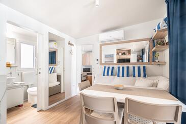 Appartamento può accogliere 6 ospiti. I letti sono disposti nelle camere da letto che sono 2, e nella sala da pranzo, su 45m2. Gli ospiti hanno a disposizione il proprio terrazzo per godere nelle calde serate estive. Per il piacere totale e il relax c'è il barbecue privato solo per gli ospiti di quest'alloggio.