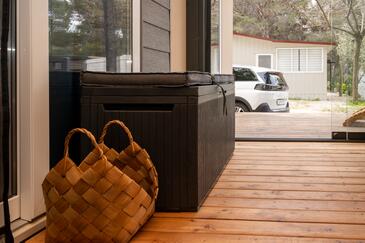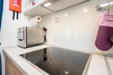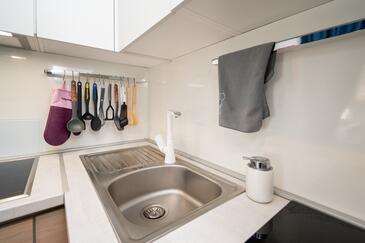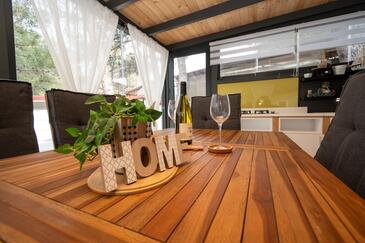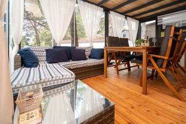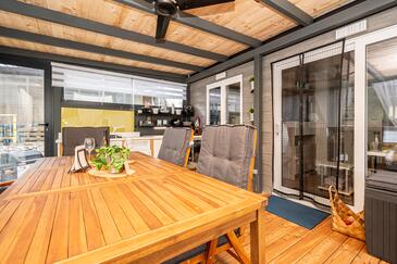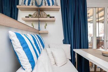 Appartamento può accogliere 6 ospiti. I letti sono disposti nelle camere da letto che sono 2, e nella sala da pranzo, su 45m2. Gli ospiti hanno a disposizione il proprio terrazzo per godere nelle calde serate estive. Per il piacere totale e il relax c'è il barbecue privato solo per gli ospiti di quest'alloggio.