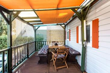 Appartamento può accogliere 4 ospiti. I letti sono disposti nelle camere da letto che sono 2, su 28m2. Gli ospiti hanno a disposizione il proprio terrazzo per godere nelle calde serate estive. Si può preparare il cibo utilizzando il barbecue comune. Durante il soggiorno gli ospiti si possono rilassare nella piscina privata.