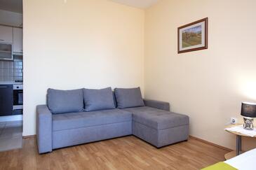 Appartamento può accogliere 2 ospiti. I letti sono disposti nelle camere da letto che sono 1, su 35m2. Gli ospiti hanno a disposizione il proprio terrazzo per godere nelle calde serate estive. Si può preparare il cibo utilizzando il barbecue comune.