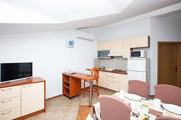 Appartamento può accogliere 2 ospiti. I letti sono disposti nelle camere da letto che sono 1, su 35m2. Gli ospiti hanno a disposizione il proprio terrazzo per godere nelle calde serate estive. Si può preparare il cibo utilizzando il barbecue comune.