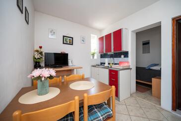 Appartamento può accogliere 4 ospiti. I letti sono disposti nelle camere da letto che sono 2, e nella camera di soggiorno, su 27m2. Gli ospiti hanno a disposizione il proprio terrazzo per godere nelle calde serate estive. Si può preparare il cibo utilizzando il barbecue comune. Nell'unità di alloggio si possono portare gli animali domestici con un pagamento supplementare.