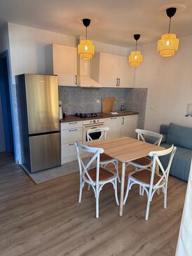 Appartamento può accogliere 5 ospiti. I letti sono disposti nelle camere da letto che sono 2, e nella camera di soggiorno, su 60m2. Gli ospiti hanno a disposizione il proprio terrazzo per godere nelle calde serate estive. Dall'appartamento si gode di una vista sul mare. Si può preparare il cibo utilizzando il barbecue comune. Nell'unità di alloggio si possono portare gli animali domestici con un pagamento supplementare.
