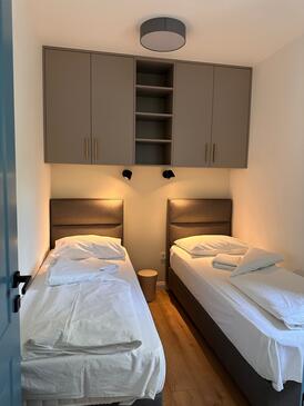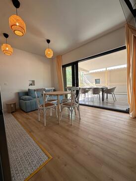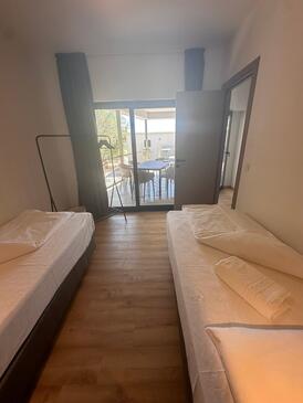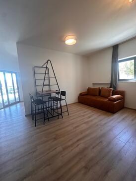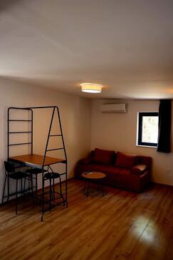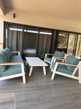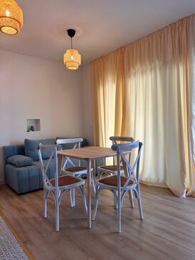Appartamento può accogliere 5 ospiti. I letti sono disposti nelle camere da letto che sono 2, e nella camera di soggiorno, su 60m2. Gli ospiti hanno a disposizione il proprio terrazzo per godere nelle calde serate estive. Dall'appartamento si gode di una vista sul mare. Si può preparare il cibo utilizzando il barbecue comune. Nell'unità di alloggio si possono portare gli animali domestici con un pagamento supplementare.