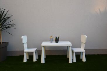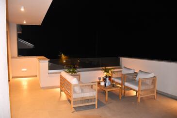 Casa può accogliere 6 ospiti. I letti sono disposti nelle camere da letto che sono 3, su 133m2. Gli ospiti hanno a disposizione il proprio terrazzo per godere nelle calde serate estive. Dalla casa si gode di una vista sul mare. Per il piacere totale e il relax c'è il barbecue privato solo per gli ospiti di quest'alloggio.