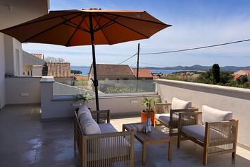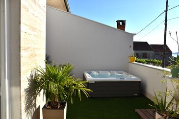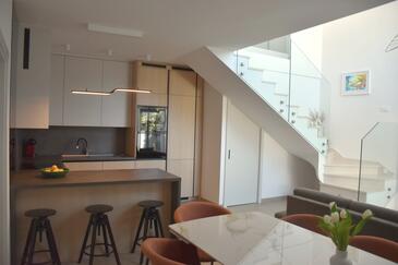 Casa può accogliere 6 ospiti. I letti sono disposti nelle camere da letto che sono 3, su 133m2. Gli ospiti hanno a disposizione il proprio terrazzo per godere nelle calde serate estive. Dalla casa si gode di una vista sul mare. Per il piacere totale e il relax c'è il barbecue privato solo per gli ospiti di quest'alloggio.