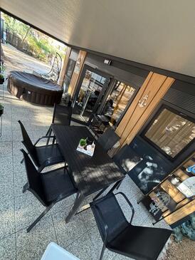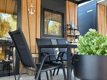 Appartamento può accogliere 5 ospiti. I letti sono disposti nelle camere da letto che sono 2, e nella camera di soggiorno, su 30m2. Gli ospiti hanno a disposizione il proprio terrazzo per godere nelle calde serate estive. Per il piacere totale e il relax c'è il barbecue privato solo per gli ospiti di quest'alloggio.