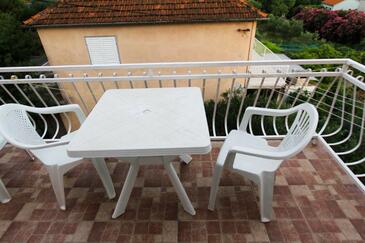 Appartamento può accogliere 5 ospiti. I letti sono disposti nelle camere da letto che sono 2, e nella camera di soggiorno, su 52m2. Gli ospiti hanno a disposizione il proprio balcone per godere delle calde serate estive. Dall'appartamento si gode di una vista sul mare. Si può preparare il cibo utilizzando il barbecue comune.
