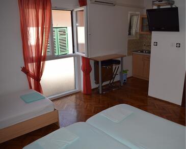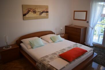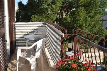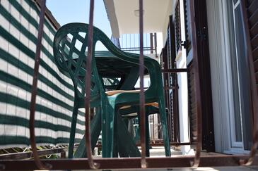 Appartamento può accogliere 8 ospiti. I letti sono disposti nelle camere da letto che sono 3, e nella camera di soggiorno, su 105m2. Gli ospiti hanno a disposizione il proprio balcone per godere delle calde serate estive. Dall'appartamento si gode di una vista sul mare. Si può preparare il cibo utilizzando il barbecue comune.