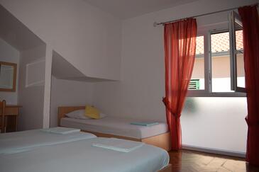 Appartamento può accogliere 8 ospiti. I letti sono disposti nelle camere da letto che sono 3, e nella camera di soggiorno, su 105m2. Gli ospiti hanno a disposizione il proprio balcone per godere delle calde serate estive. Dall'appartamento si gode di una vista sul mare. Si può preparare il cibo utilizzando il barbecue comune.