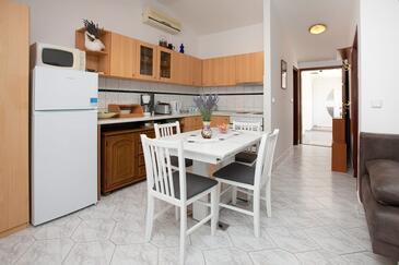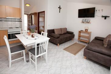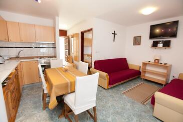 Appartamento può accogliere 8 ospiti. I letti sono disposti nelle camere da letto che sono 2, e nella camera di soggiorno, su 82m2. Gli ospiti hanno a disposizione il proprio terrazzo per godere nelle calde serate estive. Dall'appartamento si gode di una vista sul mare. Si può preparare il cibo utilizzando il barbecue comune. Le stanze dell'unità d'alloggio non sono connesse in un insieme.
