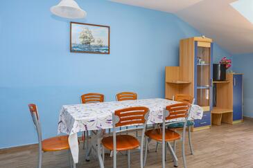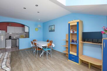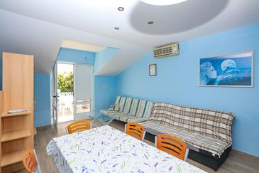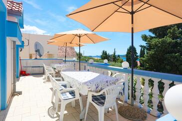 Appartamento può accogliere 6 ospiti. I letti sono disposti nelle camere da letto che sono 2, e nella camera di soggiorno, su 60m2. Gli ospiti hanno a disposizione il proprio terrazzo per godere nelle calde serate estive. Dall'appartamento si gode di una vista sul mare. Si può preparare il cibo utilizzando il barbecue comune. Nell'unità di alloggio si possono portare gli animali domestici con un pagamento supplementare.