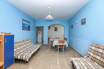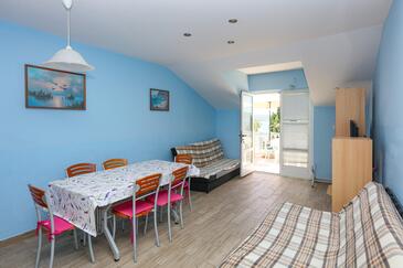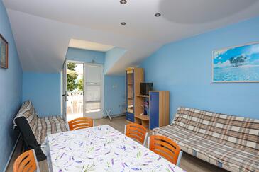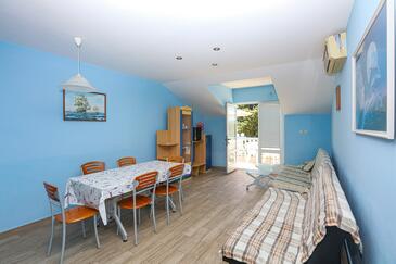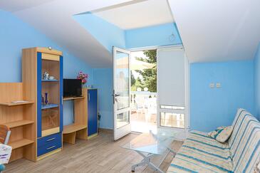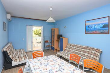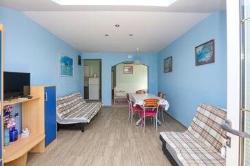 Appartamento può accogliere 6 ospiti. I letti sono disposti nelle camere da letto che sono 2, e nella camera di soggiorno, su 60m2. Gli ospiti hanno a disposizione il proprio terrazzo per godere nelle calde serate estive. Dall'appartamento si gode di una vista sul mare. Si può preparare il cibo utilizzando il barbecue comune. Nell'unità di alloggio si possono portare gli animali domestici con un pagamento supplementare.
