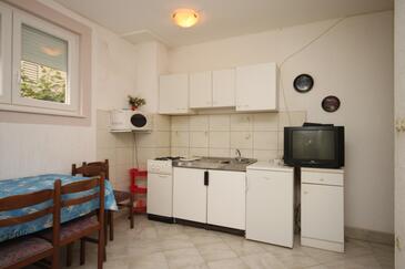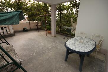 Appartamento può accogliere 5 ospiti. I letti sono disposti nelle camere da letto che sono 2, su 42m2. Gli ospiti hanno a disposizione il proprio terrazzo per godere nelle calde serate estive. Dall'appartamento si gode di una vista sul mare. Si può preparare il cibo utilizzando il barbecue comune.