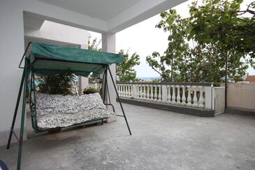 Appartamento può accogliere 5 ospiti. I letti sono disposti nelle camere da letto che sono 2, su 42m2. Gli ospiti hanno a disposizione il proprio terrazzo per godere nelle calde serate estive. Dall'appartamento si gode di una vista sul mare. Si può preparare il cibo utilizzando il barbecue comune.