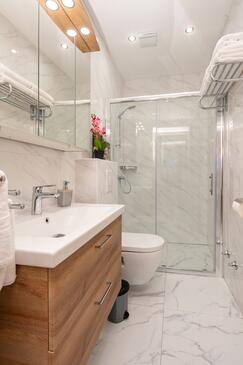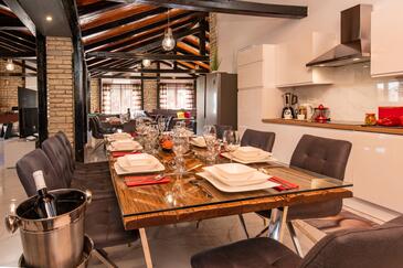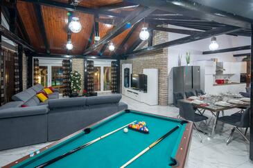 Casa può accogliere 16 ospiti. I letti sono disposti nelle camere da letto che sono 8, su 289m2. Gli ospiti hanno a disposizione il proprio terrazzo per godere nelle calde serate estive. Per il piacere totale e il relax c'è il barbecue privato solo per gli ospiti di quest'alloggio. Durante il soggiorno gli ospiti si possono rilassare nella piscina privata.
