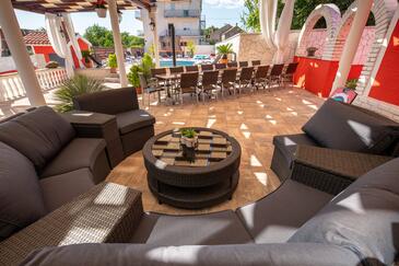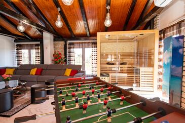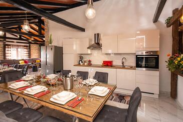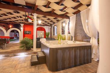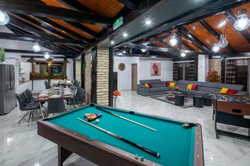 Casa può accogliere 16 ospiti. I letti sono disposti nelle camere da letto che sono 8, su 289m2. Gli ospiti hanno a disposizione il proprio terrazzo per godere nelle calde serate estive. Per il piacere totale e il relax c'è il barbecue privato solo per gli ospiti di quest'alloggio. Durante il soggiorno gli ospiti si possono rilassare nella piscina privata.