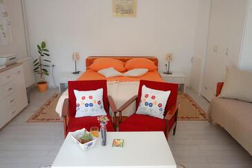 Casa può accogliere 7 ospiti. I letti sono disposti nelle camere da letto che sono 2, su 103m2. Gli ospiti hanno a disposizione il proprio terrazzo per godere nelle calde serate estive. Per il piacere totale e il relax c'è il barbecue privato solo per gli ospiti di quest'alloggio. Nell'unità di alloggio si possono portare gli animali domestici con un pagamento supplementare.