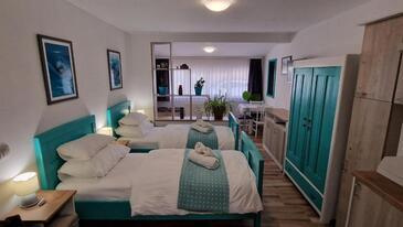 Camera può accogliere 2 ospiti. I letti sono disposti nelle camere da letto che sono 1, su 23m2. Gli ospiti hanno a disposizione il proprio terrazzo per godere nelle calde serate estive. Si può preparare il cibo utilizzando il barbecue comune. Durante il soggiorno gli ospiti possono utilizzare la piscina comune. Nell'unità di alloggio si possono portare gli animali domestici senza alcun pagamento supplementare. L'unità di alloggio prenotata è una camera con bagno proprio senza possibilità d'utilizzo della cucina.
