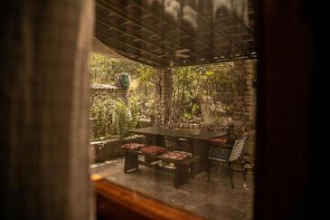 Appartamento può accogliere 5 ospiti. I letti sono disposti nelle camere da letto che sono 2, e nella camera di soggiorno, su 60m2. Gli ospiti hanno a disposizione il proprio terrazzo per godere nelle calde serate estive. Per il piacere totale e il relax c'è il barbecue privato solo per gli ospiti di quest'alloggio. Nell'unità di alloggio si possono portare gli animali domestici senza alcun pagamento supplementare.