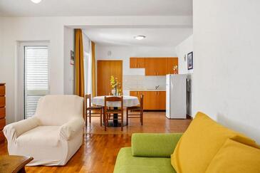 Appartamento può accogliere 6 ospiti. I letti sono disposti nelle camere da letto che sono 2, e nella camera di soggiorno, su 45m2. Gli ospiti hanno a disposizione il proprio terrazzo per godere nelle calde serate estive.