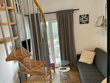 Casa può accogliere 4 ospiti. I letti sono disposti nelle camere da letto che sono 2, su 27m2. Gli ospiti hanno a disposizione il proprio terrazzo per godere nelle calde serate estive. Dalla casa si gode di una vista sul mare. Per il piacere totale e il relax c'è il barbecue privato solo per gli ospiti di quest'alloggio.