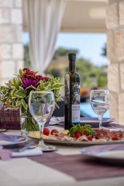 Casa può accogliere 6 ospiti. I letti sono disposti nelle camere da letto che sono 3, su 105m2. Gli ospiti hanno a disposizione il proprio terrazzo per godere nelle calde serate estive. Dalla casa si gode di una vista sul mare. Per il piacere totale e il relax c'è il barbecue privato solo per gli ospiti di quest'alloggio. Durante il soggiorno gli ospiti si possono rilassare nella piscina privata. Nell'unità di alloggio si possono portare gli animali domestici senza alcun pagamento supplementare.