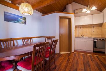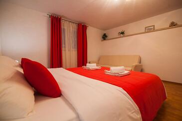 Casa può accogliere 6 ospiti. I letti sono disposti nelle camere da letto che sono 2, e nella camera di soggiorno, su 64m2. Gli ospiti hanno a disposizione il proprio terrazzo per godere nelle calde serate estive. Dalla casa si gode di una vista sul mare. Per il piacere totale e il relax c'è il barbecue privato solo per gli ospiti di quest'alloggio.