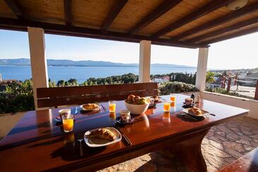 Casa può accogliere 6 ospiti. I letti sono disposti nelle camere da letto che sono 2, e nella camera di soggiorno, su 64m2. Gli ospiti hanno a disposizione il proprio terrazzo per godere nelle calde serate estive. Dalla casa si gode di una vista sul mare. Per il piacere totale e il relax c'è il barbecue privato solo per gli ospiti di quest'alloggio.