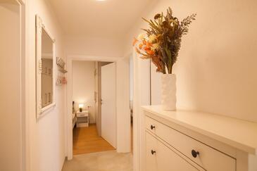 Appartamento può accogliere 6 ospiti. I letti sono disposti nelle camere da letto che sono 3, su 77m2. Gli ospiti hanno a disposizione il proprio terrazzo per godere nelle calde serate estive. Dall'appartamento si gode di una vista sul mare. Per il piacere totale e il relax c'è il barbecue privato solo per gli ospiti di quest'alloggio.