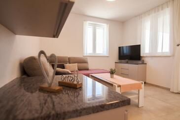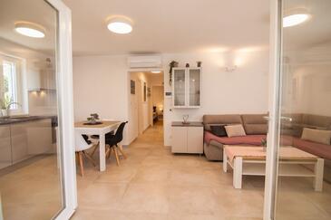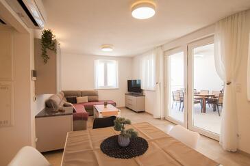 Appartamento può accogliere 6 ospiti. I letti sono disposti nelle camere da letto che sono 3, su 77m2. Gli ospiti hanno a disposizione il proprio terrazzo per godere nelle calde serate estive. Dall'appartamento si gode di una vista sul mare. Per il piacere totale e il relax c'è il barbecue privato solo per gli ospiti di quest'alloggio.