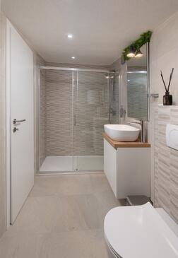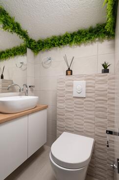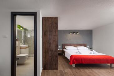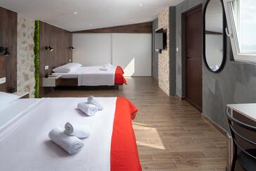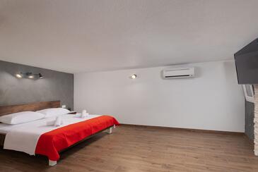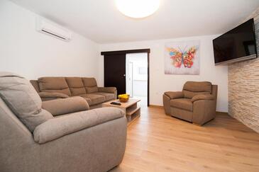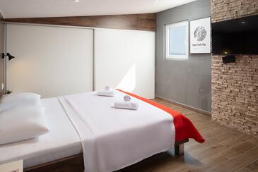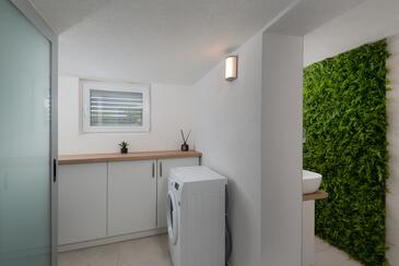 Casa può accogliere 14 ospiti. I letti sono disposti nelle camere da letto che sono 5, e nella camera di soggiorno, su 218m2. Gli ospiti hanno a disposizione il proprio terrazzo per godere nelle calde serate estive. Dalla casa si gode di una vista sul mare. Per il piacere totale e il relax c'è il barbecue privato solo per gli ospiti di quest'alloggio. Durante il soggiorno gli ospiti si possono rilassare nella piscina privata. Le stanze dell'unità d'alloggio non sono connesse in un insieme. L'unità d'alloggio ha delle stanze separate dal resto dell'unità. Arrivati nell'unità d'alloggio i clienti devono pagare un deposito (il prezzo è indicato sul sito).