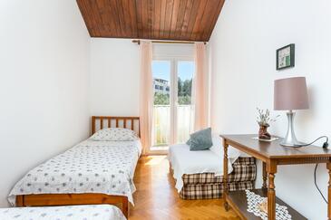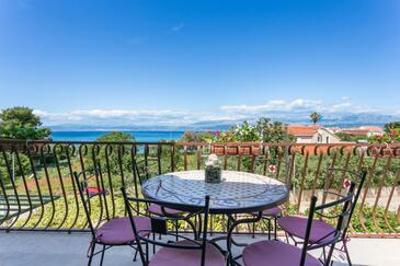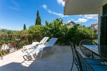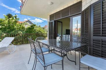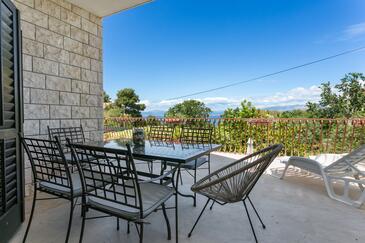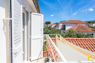 Appartamento può accogliere 5 ospiti. I letti sono disposti nelle camere da letto che sono 3, su 82m2. Gli ospiti hanno a disposizione il proprio terrazzo per godere nelle calde serate estive. Dall'appartamento si gode di una vista sul mare. Si può preparare il cibo utilizzando il barbecue comune.