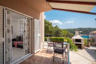 Appartamento può accogliere 3 ospiti. I letti sono disposti nelle camere da letto che sono 1, e nella camera di soggiorno, su 27m2. Gli ospiti hanno a disposizione il proprio terrazzo per godere nelle calde serate estive. Dall'appartamento si gode di una vista sul mare. Si può preparare il cibo utilizzando il barbecue comune. Nell'unità di alloggio si possono portare gli animali domestici senza alcun pagamento supplementare.