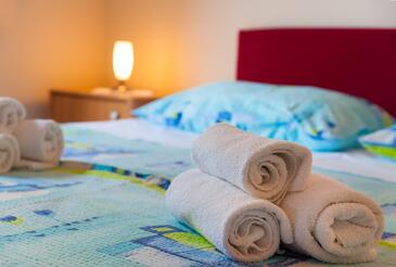 Appartamento può accogliere 6 ospiti. I letti sono disposti nelle camere da letto che sono 2, e nella camera di soggiorno, su 67m2. Gli ospiti hanno a disposizione il proprio balcone per godere delle calde serate estive. Dall'appartamento si gode di una vista sul mare.