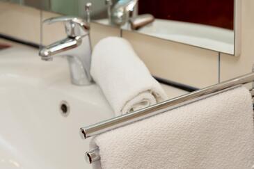 Appartamento può accogliere 6 ospiti. I letti sono disposti nelle camere da letto che sono 2, e nella camera di soggiorno, su 67m2. Gli ospiti hanno a disposizione il proprio balcone per godere delle calde serate estive. Dall'appartamento si gode di una vista sul mare.