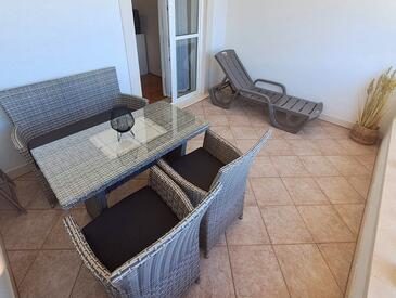 Appartamento può accogliere 6 ospiti. I letti sono disposti nelle camere da letto che sono 3, su 74m2. Gli ospiti hanno a disposizione il proprio balcone per godere delle calde serate estive. Dall'appartamento si gode di una vista sul mare. Per il piacere totale e il relax c'è il barbecue privato solo per gli ospiti di quest'alloggio. Nell'unità di alloggio si possono portare gli animali domestici con un pagamento supplementare.