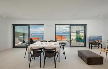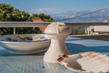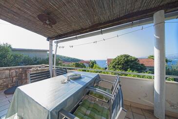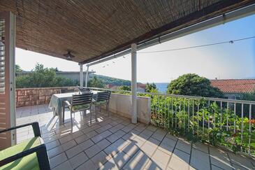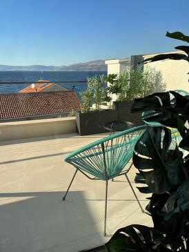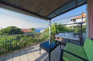 Appartamento può accogliere 4 ospiti. I letti sono disposti nelle camere da letto che sono 2, su 46m2. Gli ospiti hanno a disposizione il proprio terrazzo per godere nelle calde serate estive. Dall'appartamento si gode di una vista sul mare. Si può preparare il cibo utilizzando il barbecue comune.