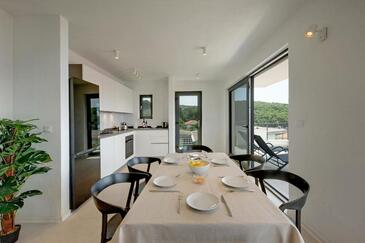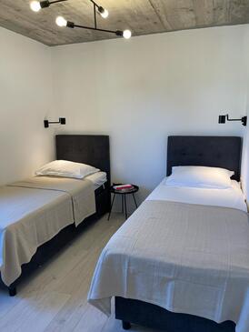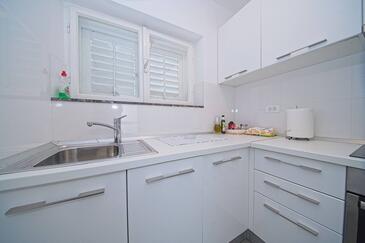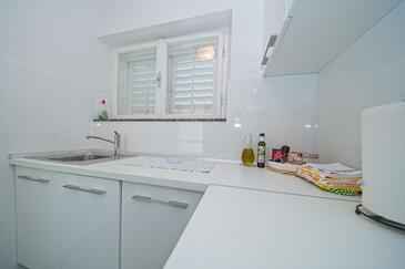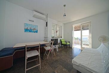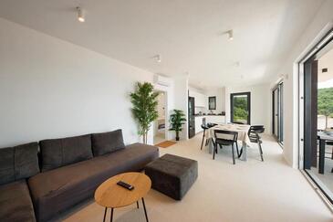 Appartamento può accogliere 4 ospiti. I letti sono disposti nelle camere da letto che sono 2, su 46m2. Gli ospiti hanno a disposizione il proprio terrazzo per godere nelle calde serate estive. Dall'appartamento si gode di una vista sul mare. Si può preparare il cibo utilizzando il barbecue comune.
