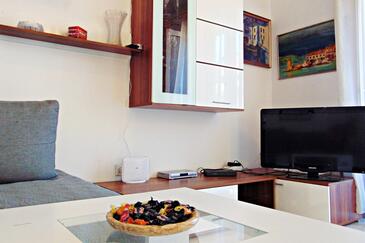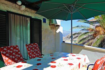 Appartamento può accogliere 4 ospiti. I letti sono disposti nelle camere da letto che sono 2, su 60m2. Gli ospiti hanno a disposizione il proprio terrazzo per godere nelle calde serate estive. Dall'appartamento si gode di una vista sul mare. Si può preparare il cibo utilizzando il barbecue comune.