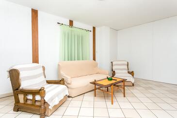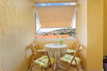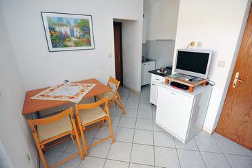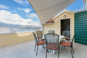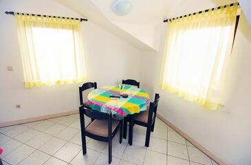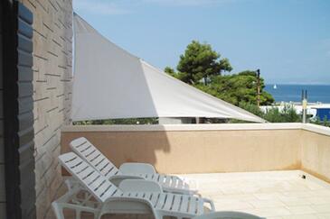 Appartamento può accogliere 5 ospiti. I letti sono disposti nelle camere da letto che sono 3, su 87m2. Gli ospiti hanno a disposizione il proprio terrazzo per godere nelle calde serate estive. Dall'appartamento si gode di una vista sul mare. Si può preparare il cibo utilizzando il barbecue comune.