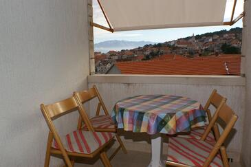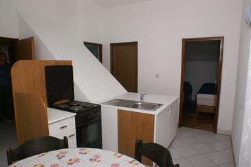 Appartamento può accogliere 5 ospiti. I letti sono disposti nelle camere da letto che sono 3, su 87m2. Gli ospiti hanno a disposizione il proprio terrazzo per godere nelle calde serate estive. Dall'appartamento si gode di una vista sul mare. Si può preparare il cibo utilizzando il barbecue comune.