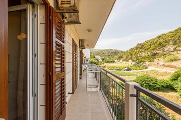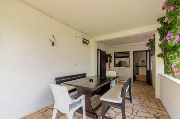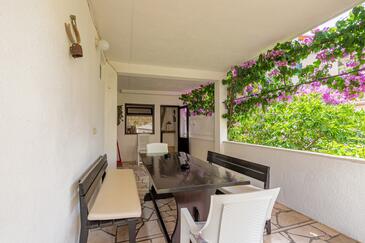 Appartamento può accogliere 6 ospiti. I letti sono disposti nelle camere da letto che sono 3, su 75m2. Gli ospiti hanno a disposizione il proprio terrazzo per godere nelle calde serate estive. Dall'appartamento si gode di una vista sul mare. Si può preparare il cibo utilizzando il barbecue comune.